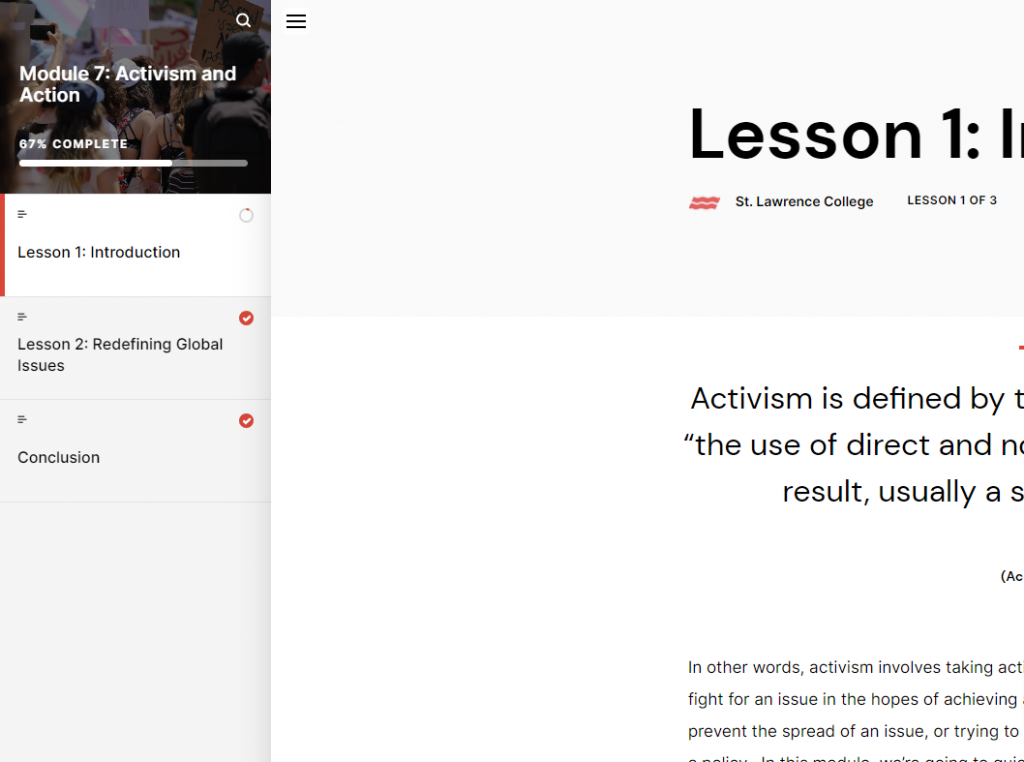 There are various ways to display images and engaging graphics throughout a course lesson. This can include a gallery, sliders, and full-page media.