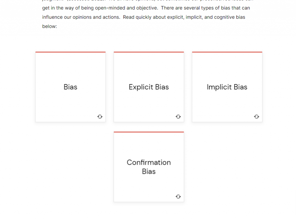 Flip cards can include text or an image per card. These can be displayed in a row or a stack.