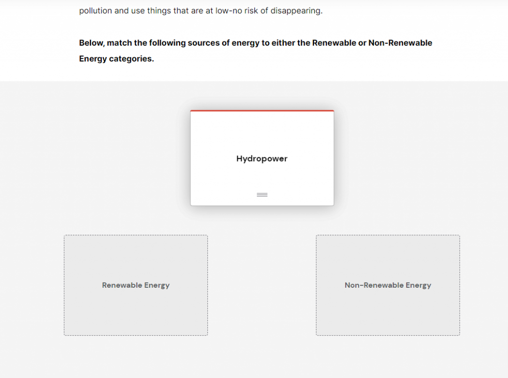 Category sorting allows students to sort a list of items into 3-4 category choices. Getting incorrect or correct feedback.